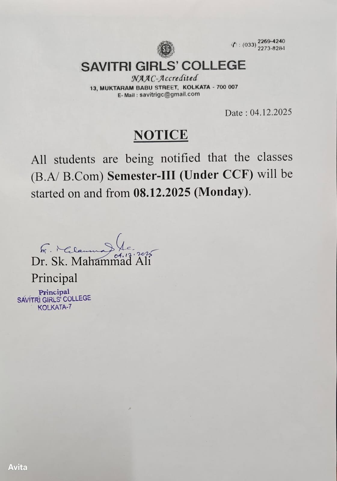 Urgent Notice for Registration(session 2025 -2026) under the University of Calcutta